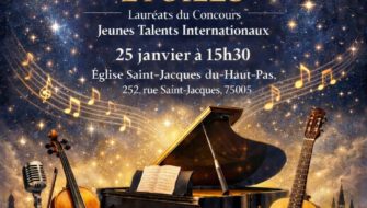 Concert Nouvelles Etoiles – Lauréats du concours Jeunes Talents Internationaux à l’église Saint-Jacques du Haut-Pas Dimanche 25 janvier à 15h30 Les jeunes Lauréats joueront en…